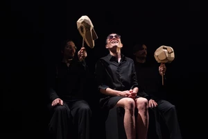 Le texte de Siméon, tantôt lyrique tantôt réaliste, fait intervenir un chœur qui situe l’action et la commente à la manière de la tragédie antique. Un chœur ici composé d’un comédien, d’un musicien et d’un éclairagiste : tous acteurs, manipulateurs de marionnettes, musiciens au service de l’œuvre.